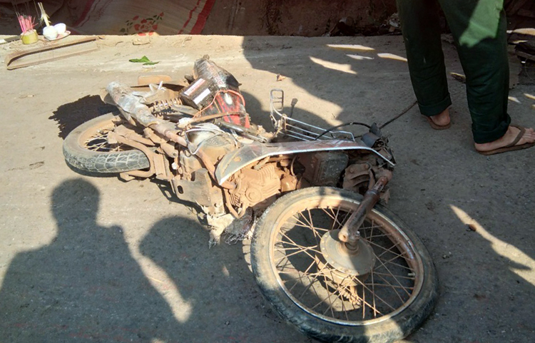 Chiếc xe máy của nạn nhân sau khi bị đè. Ảnh: Văn Trăm.