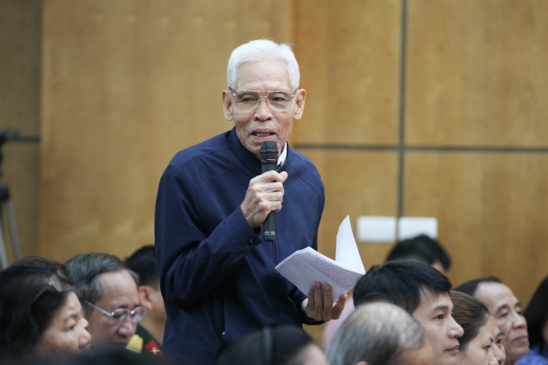 Cử tri Trần Đình Khai (phường Giảng Võ, Ba Đình) đề cập đến dự thảo bộ luật Lao động (sửa đổi) vừa được công bố và nhắc đến 3 vấn đề tuổi nghỉ hưu, ngày nghỉ của người lao động, làm thế nào để hạn chế lợi ích nhóm.