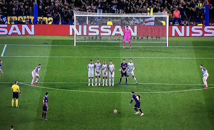 Hôm nọ thằng bạn đồng nghiệp tui nó nói (bênh Liverpool chỉ vì Klopp, der Bekloppte- crazy man, là người Đức, haha), đúng lý ra là trọng tài fải cho lặp lại cú đá phạt của Messi cho trái 3:0 từ 24m như mơ ! Vì nó nói mấy người bạn làm trọng tài đã nói theo luật thì Messi 0 được đổi vị trí mà trọng tài đã ấn định (Messi đã dời trái banh thụt lùi lại khoảng 1m, để lấy trớn xa hàng rào bên đối phương) !