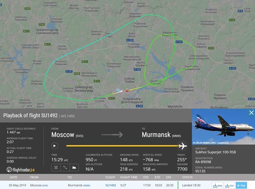 Theo trang chuyên theo dõi chuyến bay Flightradar24, phi cơ gặp nạn đã bay quanh Moskva hai vòng và hạ cánh sau khoảng 45 phút.