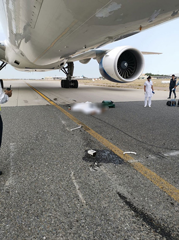 Hãng hàng không Kuwait Airways cho biết một nhân viên hỗ trợ mặt đất của hãng hôm qua tử vong do bị chiếc Boeing 777-300ER cán qua người. Tai nạn xảy ra khi anh này đang làm nhiệm vụ kéo máy bay từ bãi đỗ tới nhà ga số 4 ở sân bay quốc tế Kuwait.