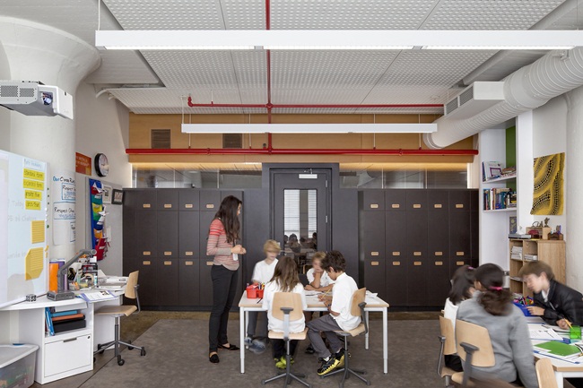 Tầng trên là Co.Lab với phòng học môn khoa học, công nghệ, kỹ thuật, nghệ thuật và toán học.