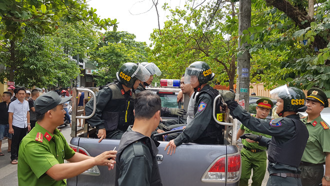 Lực lượng Cảnh sát cơ động của Công an tỉnh Quảng Trị cũng được huy động. Khi lực lượng Công an TP.Đông Hà cạy được cửa chính của ngôi nhà, lực lượng cảnh sát cơ động trang bị đầy đủ áo giáp, mặt nạ chống độc xông vào trong, khống chế nghi phạm “ngáo đá”.