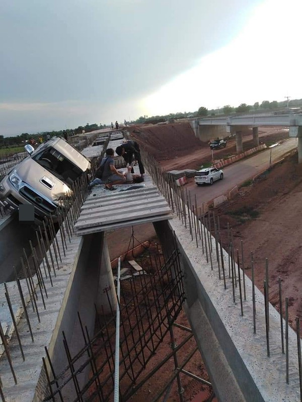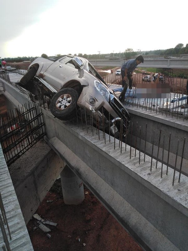 Vào khoảng 17h30 ngày 5/5, một vụ tai nạn đã xảy ra tại huyện Sikhio, tỉnh Nakhon Ratchasima, Thái Lan. Điều đáng nói là vị trí tai nạn lại xảy ra trên một chiếc cầu cao tốc đang xây dựng.