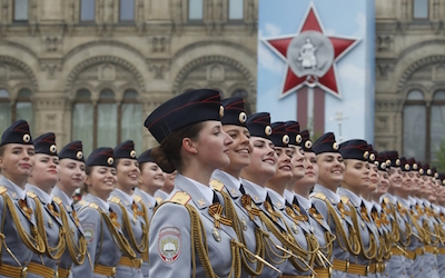 Các nữ quân nhân Nga rạng ngời tại lễ duyệt binh. Nụ cười cùng dáng vẻ nghiêm trang đã cho thấy niềm tự hào dân tộc trong họ khi được tham gia hoạt động kỷ niệm chiê'n thắng đầy ý nghĩa.