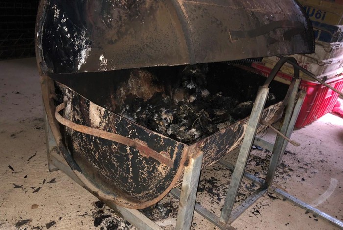 Lò nướng bằng thùng phi mà Vũ dùng phi tang xác vợ