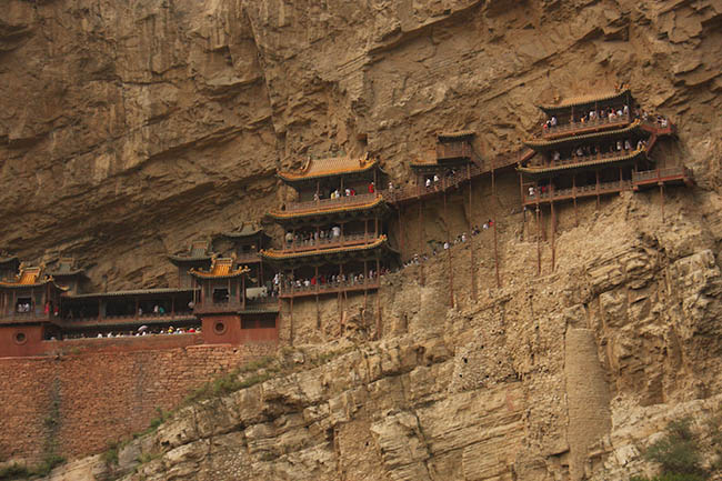 Tu viện Treo, còn được gọi là Đền Xuankong hoặc Đền Treo, là một ngôi đền cổ được xây dựng ngay trong một vách đá. Nằm ở Đại Đồng, tỉnh Sơn Tây, tu viện này đã hơn 1.500 năm tuổi. Nhìn trực quan, nó tuyệt đẹp, nhưng nó cũng rất quan trọng vì ngôi đền tôn vinh 3 tôn giáo khác nhau đồng thời: Phật giáo, Nho giáo và Đạo giáo. Một loạt các lối đi liên kết với nhau 40 phòng của tu viện treo, và du khách thực sự có thể vào tu viện và nhìn ra từ khuôn mặt vách đá từ chính ngôi đền.