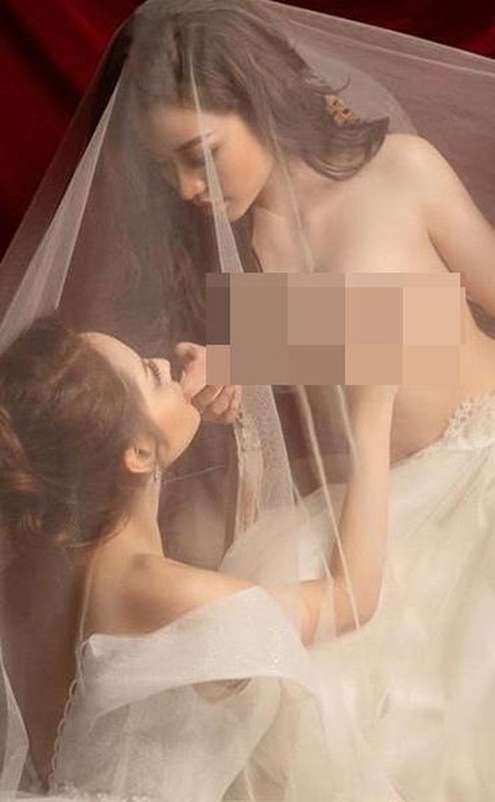 Hình ảnh nhạy cảm trong bộ ảnh cưới của 2 cô nàng.