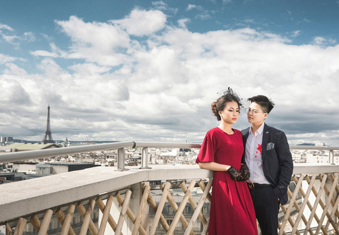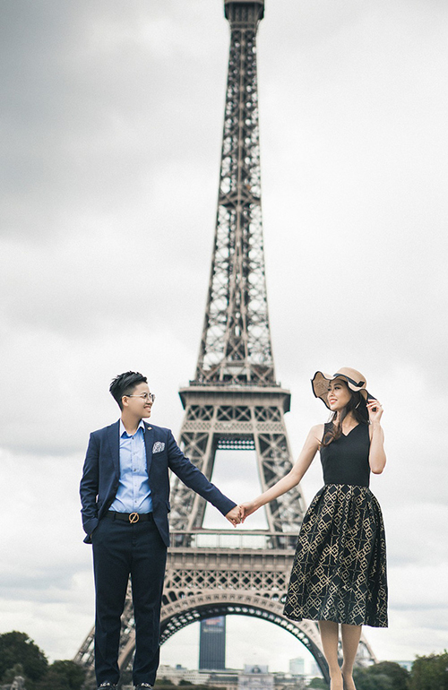 Dưới chân tháp Eiffel, hai người đã cho ra đời một bộ ảnh cưới mang chủ đề về một câu chuyện tình Paris dành cho riêng mình. Đó vừa là những khoảnh khắc hạnh phúc, vừa là đánh dấu cho cái kết đẹp mà Khương và Ngọc Anh xứng đáng có được sau biết bao vui buồn suốt 3 năm bên nhau
