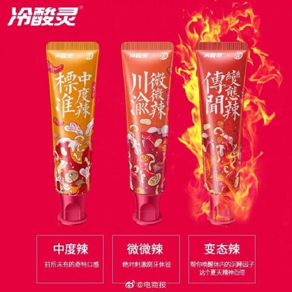 Lãnh Toan Linh (Leng Suan Ling), một nhà sản xuất kem đánh răng đến từ Trung Quốc, đã hợp tác với chuỗi nhà hàng lẩu Tiểu Long Khảm (Xiao Long Kan), cho ra mắt 3 loại kem đánh răng vị lẩu với số lượng có hạn: Cay vừa, cay tê Tứ Xuyên và cay phát điên.