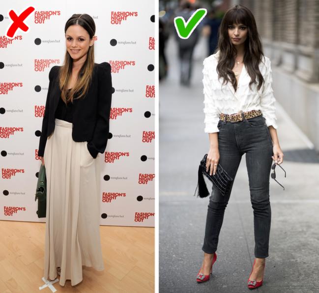 Trang phục quá chật hoặc quá rộng đều khiến bạn trở nên kém sang trong mắt người khác. Quần áo quá chật làm bạn cực kỳ khó chịu, làm lộ những khuyết điểm cơ thể, ngược lại quần áo quá rộng sẽ xộc xệch, nhăn nhúm, khiến bạn trở nên nặng nề và luộm thuộm. Tốt nhất bạn nên chọn trang phục vừa vặn với mình, bởi chỉ như thế bạn mới khoe được vẻ đẹp của cơ thể, trông gọn gàng và thanh lịch.