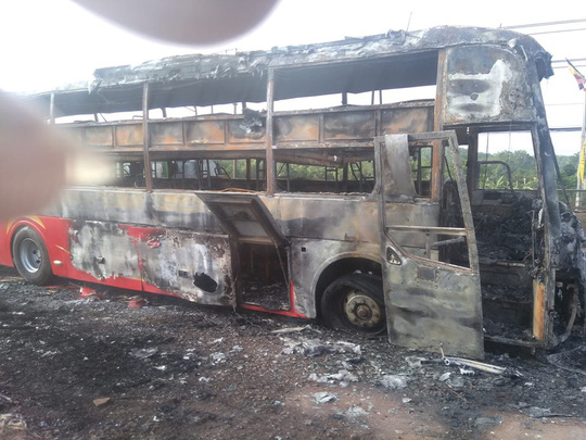 Xe cháy rụi, 45 hành khách cùng nhà xe kịp thoát thân