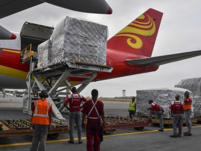 Theo hãng tin RT, Trung Quốc vừa gửi thêm một lô hàng viện trợ nhân đạo tới Venezuela. Thông tin này đưa ra dựa vào dữ liệu theo dõi chuyến bay của dịch vụ FlightRadar24 và một đoạn video cho thấy một tàu chở hàng đã đáp xuống Venezuela. Trước đó hồi tháng 4, Bắc Kinh đã gửi hàng chục tấn thuốc men tới quốc gia Nam Mỹ này.