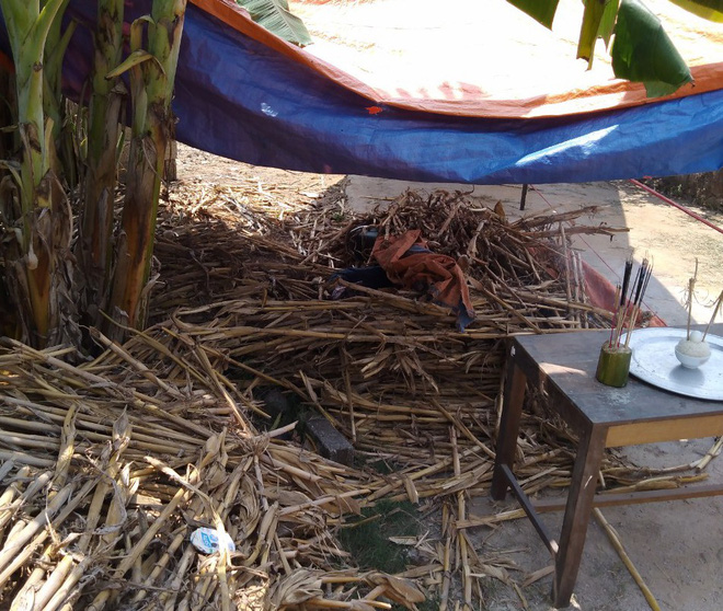 Sau khi giết anh họ, Kế lấy xe máy đè lên nạn nhân và dấu dưới đống cây ngô khô.