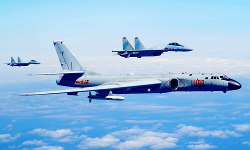 Tiêm kích và oanh tạc cơ Trung Quốc trong một cuộc diễn tập gần Đài Loan hồi tháng 7/2018. Ảnh: Weibo.
