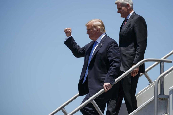 Ông Trump có mặt tại sân bay quốc tế Chennault vào ngày 14/5. Ảnh: AP.