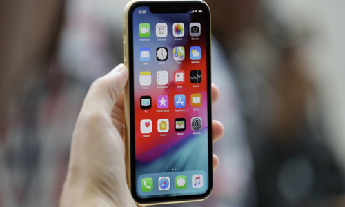 Một điện thoại iPhone XR tại triển lãm ở Nhà hát Steve Jobs trong sự kiện giới thiệu sản phẩm mới ở Cupertino, California hôm 12/9/2018. Ảnh: AP.