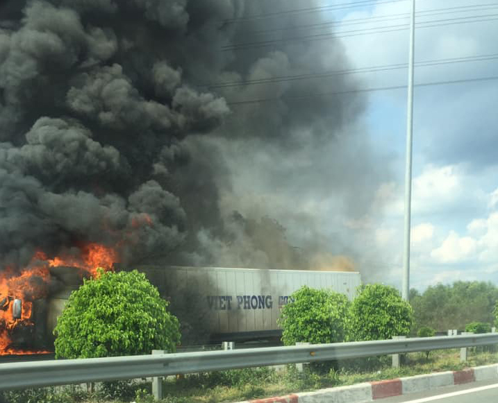 Khi chiếc xe vừa qua đường dẫn từ quốc lộ 51 lên cao tốc TPHCM - Long Thành - Dầu Giây (huyện Long Thành), tài xế phát hiện lửa phát ra từ đầu xe. Lúc này, tài xế vội dừng xe rồi cùng phụ xe thoát ra bên ngoài.