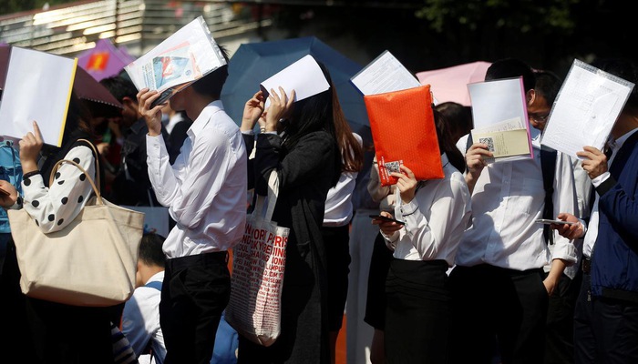 Sinh viên xếp hàng tại một hội chợ việc làm ở Quảng Châu, Trung Quốc, tháng 11/2018 - Ảnh: Reuters.