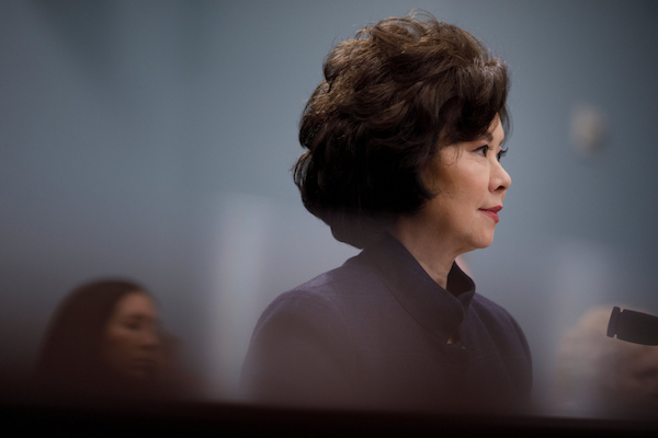 Bộ trưởng Giao thông vận tải Mỹ đang rơi vào tầm ngắm. Sau khi có thông tin người thân của bà điều hành công ty có mối quan hệ kinh doanh sâu sắc với Trung Quốc.
