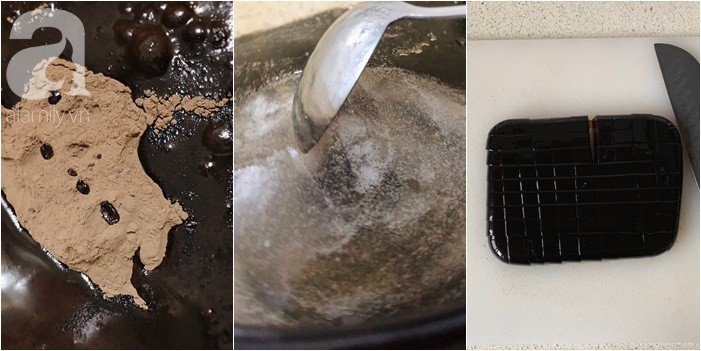 Quậy đều cho đến khi bột chín mịn màng, khi quậy có cảm giác tương đối nặng tay.