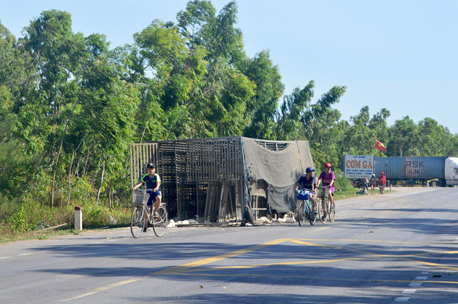 Nhà xe cho biết họ chỉ gom được gần 700 con vịt còn sống. Ngoài một số ít chết và bị xe cán qua, hàng trăm con đã bị người hôi của bắt mất.