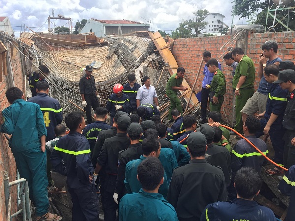 Lúc này chủ thầu là ông Huỳnh Công Bằng (54 tuổi, trú đường Lê Lợi, phường Hội Thương) và 13 nhân công khác cùng đổ bê tông. Trong quá trình đổ bê tông, các nhân công phát hiện một phần phía sau nhà xuất hiện sụt lún nên đã báo cho ông Bằng khắc phục phần bị lỗi.