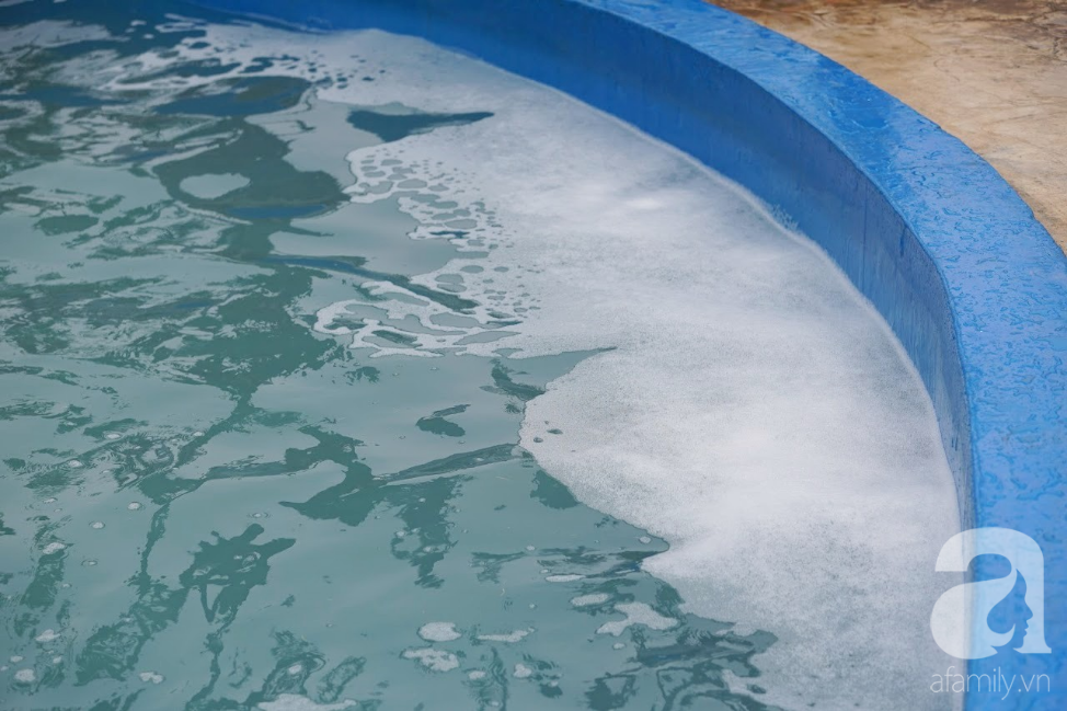 Mặc dù nước trong bể rất nông, chưa đến đầu gối người lớn, nhưng màu nước xám xịt không thấy đáy.
