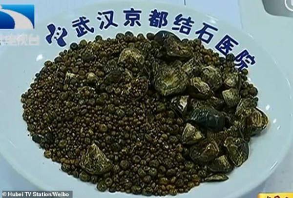 Gần đây, cô He đã đến bệnh viện sau khi bị đau bụng không thể chịu nổi. Cô đã bị sốc khi phát hiện ra rằng số lượng sỏi mật của cô đã tăng lên nhanh chóng, lên tới hàng ngàn viên sỏi. "Tôi không biết mình lại có quá nhiều sỏi tới vậy", người phụ nữ nói với một phóng viên từ Đài truyền hình Hồ Bắc.