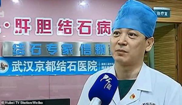 Cuộc phẫu thuật kéo dài ba tiếng đã diễn ra tại Bệnh viện Jingdu ở Vũ Hán, tỉnh Hồ Bắc, Trung Quốc. Người phụ nữ 54 tuổi, được biết đến với tên He cho biết cô đã được phát hiện có một chút sỏi mật từ 7 năm trước, nhưng không thể phẫu thuật do bị huyết áp cao.