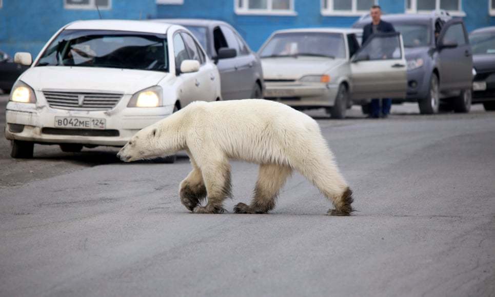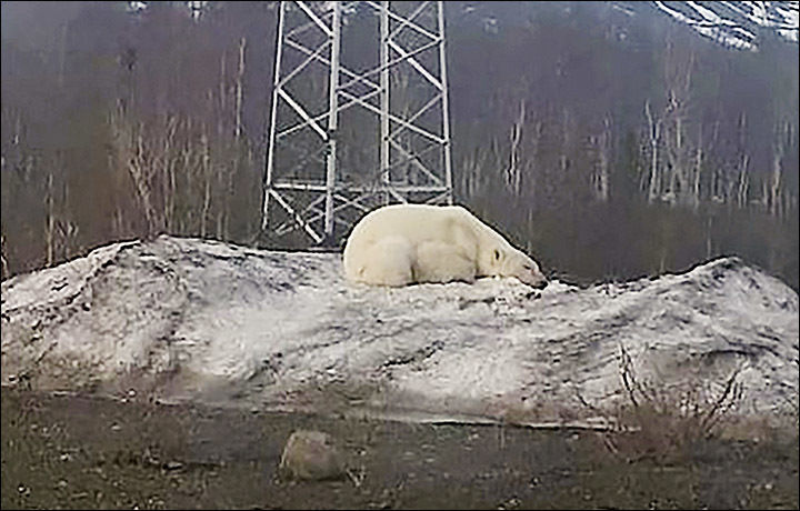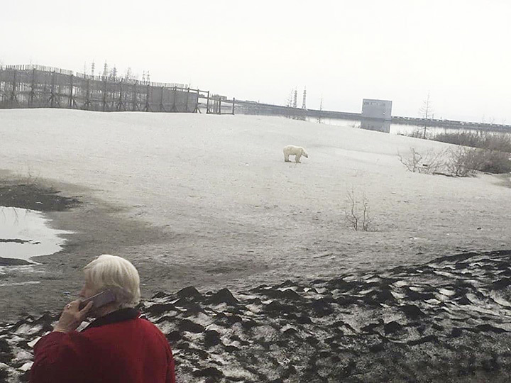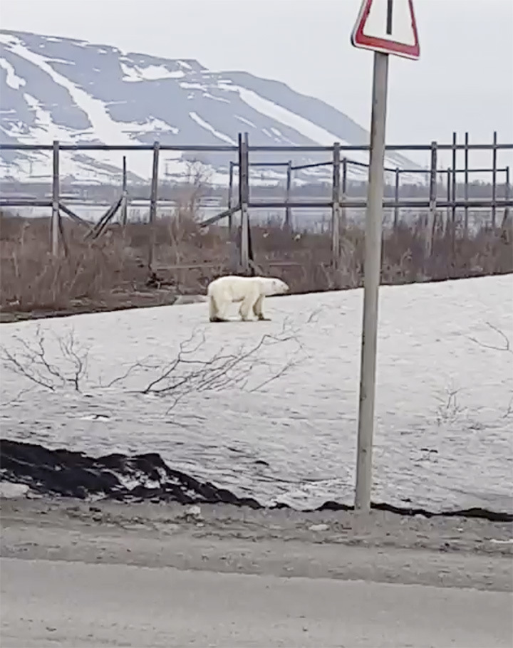 Tại một thành phố công nghiệp lớn của Nga ở phía Bắc Siberia đã xuất hiện một chú gấu đói lả đã đi ‘dạt nhà’ hàng trăm cây số từ nơi sống tự nhiên của mình ở Bắc Cực, khiến nó phải kiệt sức, sau khi đã đi lạc vào Norilsk để tìm kiếm thức ăn trên đất liền, khiến chúng tiếp xúc với con người và đến những khu vực có người ở.