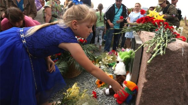 Đặt hoa ở làng Grabovo, Ukraine hồi tháng 7/2017 để tưởng niệm nạn nhân vụ MH17
