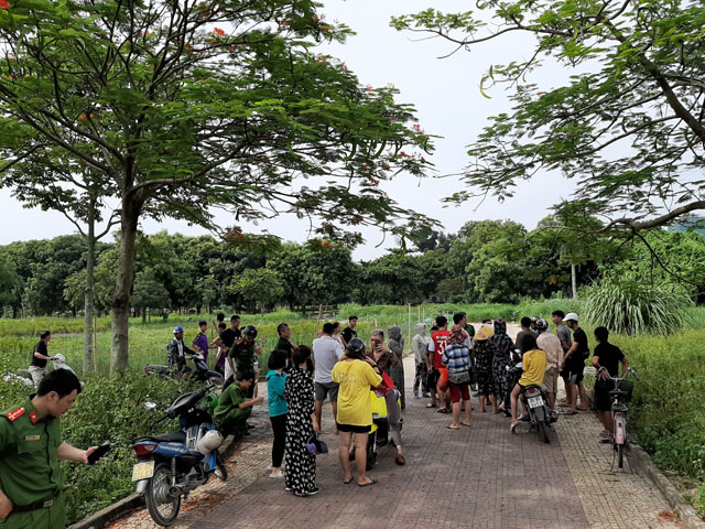 Nhiều người dân địa phương hiếu kỳ tập trung lại xem lực lượng chức năng khám nghiệm hiện trường.