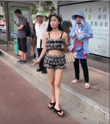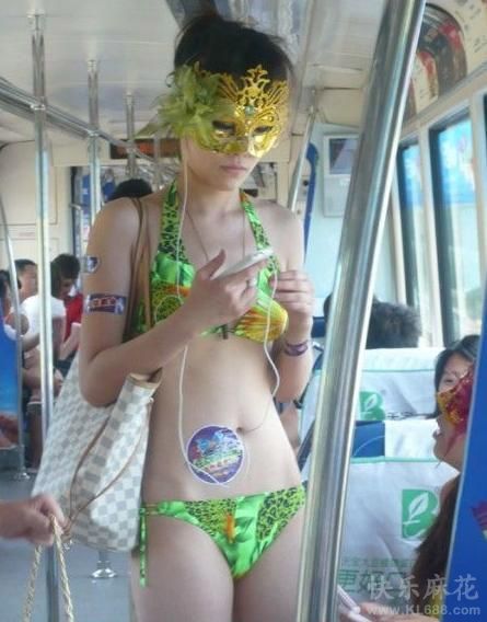 Cô gái Trung Quốc mặc đồ bơi lên xe bus công cộng.