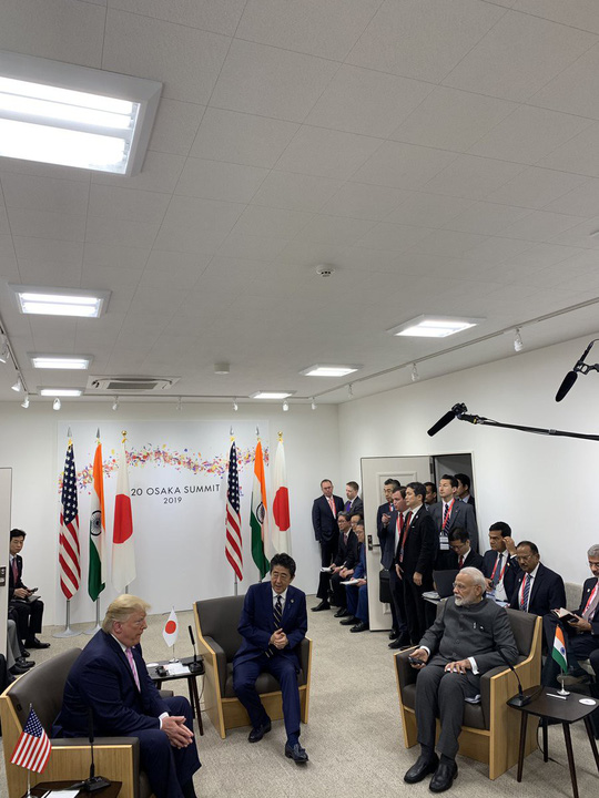 Ngay ngày đầu tiên tới Osaka, Nhật Bản dự Thượng đỉnh G20, Tổng thống Donald Trump đã nhóm họp với Thủ tướng Nhật Bản Shinzo Abe và Thủ tướng Ấn Độ Narendra Modi trong cuộc gặp được mô tả là nền tảng của hòa bình và thịnh vượng của khu vực.