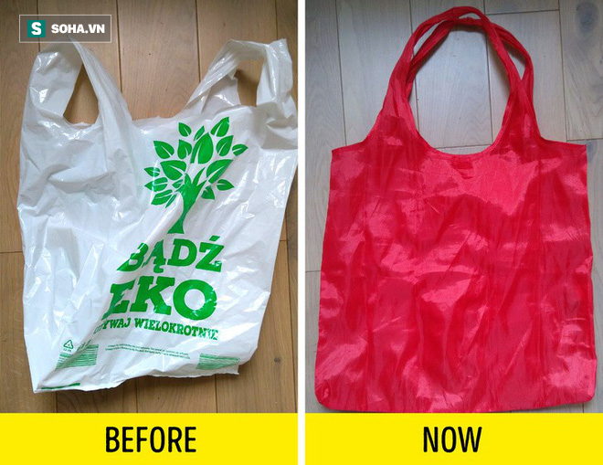 • Tôi thay thế những túi nhựa bằng túi vải: