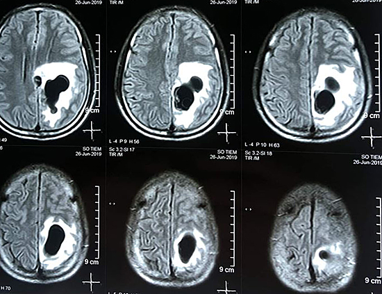 Hình ảnh X-quang nhiều ổ sán trên não người đàn ông ở Nghệ An.
