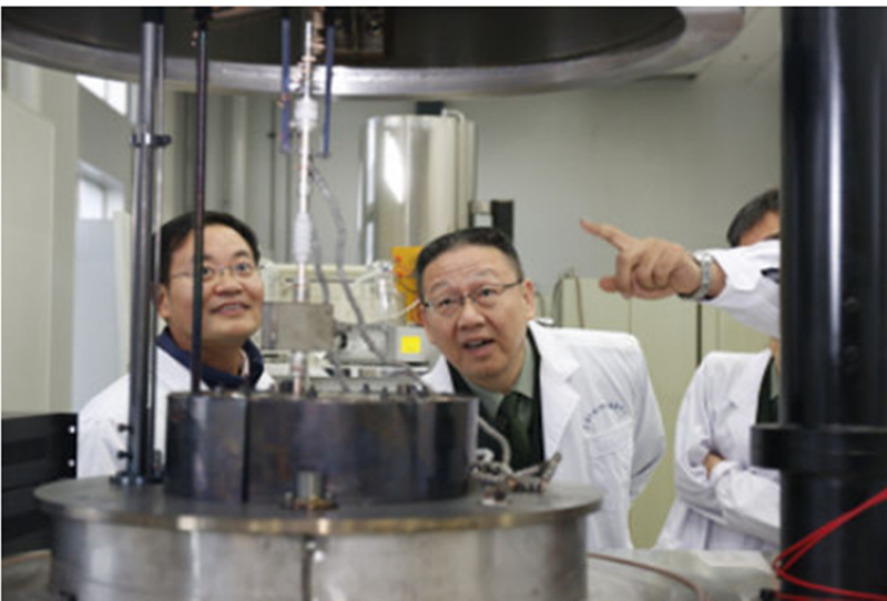 Tiền Vệ Bình (giữa) trong phòng thí nghiệm
