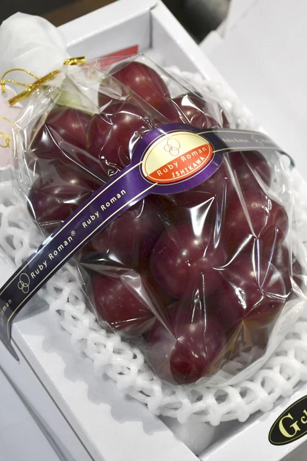 Giống nho Ruby Roman, do chính quyền tỉnh Ishikawa phát triển, nổi tiếng ngon ngọt với hàm lượng đường cao và ít axit. Mỗi quả nho nặng hơn 20 gram.