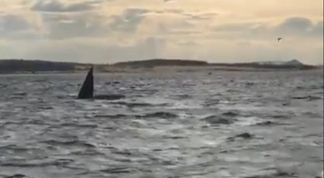 Dù chỉ mới trông thấy chiếc vây khổng lồ của chú cá voi từ xa, nhiều du khách đã không giấu được nỗi phấn khích của mình mà hò reo vui sướng.
