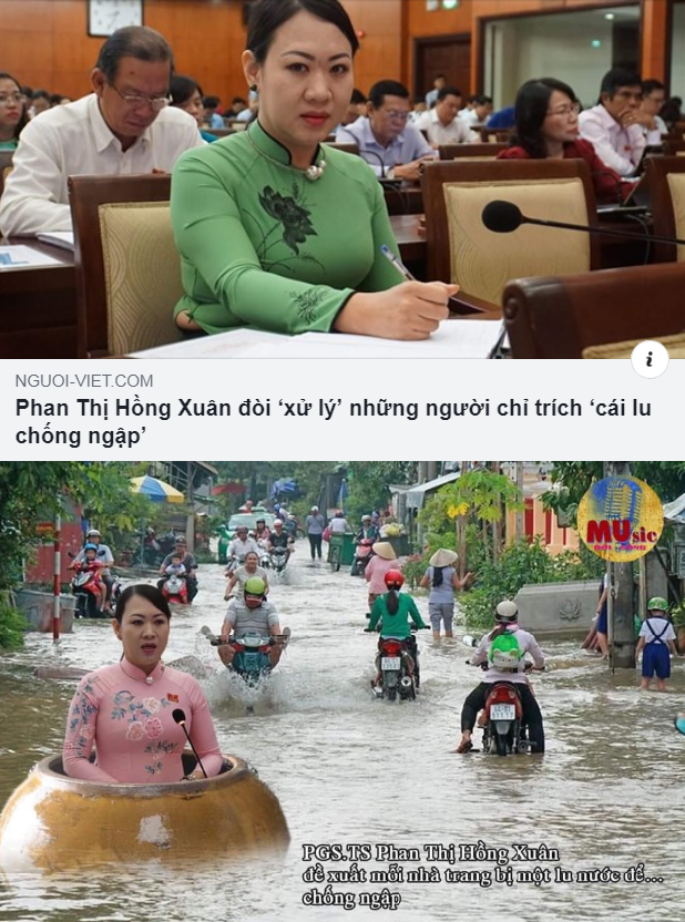 Không chỉ có bà Xuân, chẳng cá nhân nào là đại diện cho nhân dân TP.HCM, đại diện quý vị, chất vấn đòi làm rõ xem những ai phải chịu trách nhiệm về việc cắt giảm nhiều thứ phúc lợi liên quan tới an sinh để có tiền chống ngập, dùng viện trợ để chống ngập, vay thiên hạ trả lãi cao để chống ngập, rồi đem công thổ đổi các công trình chống ngập,… nhưng ngập lụt ở thành phố này càng ngày càng trầm trọng, tới mức một Phó Giáo sư – Tiến sĩ phải tính tới việc dùng… lu!