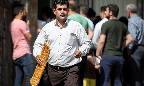 Một người đàn ông mua bánh ở trung tâm Tehran. Ảnh: Reuters