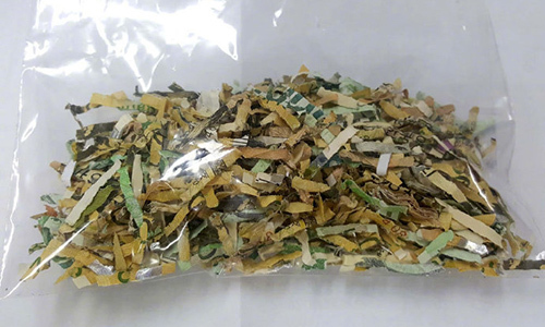 Số tiền bị cắt nhỏ khi cho vào máy cắt giấy. Ảnh: Weibo.