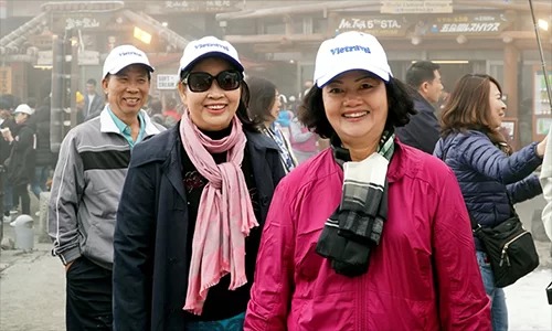 Mũ phát cho khách đi tour thường được chọn màu sáng, bắt mắt để dễ nhận biết. Ảnh: Vietravel.