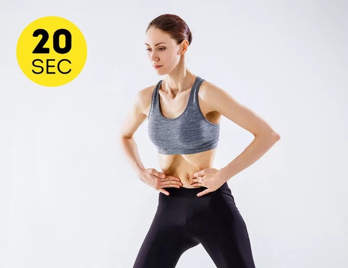 Bài tập hít thở hóp chặt bụng rất tốt trong việc siết chặt cơ, đào thải độc tố ra khỏi cơ thể. Bài tập này nên được thực hiện trong lúc bụng rỗng. Đứng thẳng, người hơi cúi về phía trước, hai tay đặt lên hông. Hít sâu sao cho không khí tràn đầy vào phổi, dạ dày. Giữ trong vài giây rồi thở ra toàn bộ, sao cho bụng hóp chặt lại. Lặp lại động tác 10 lần.