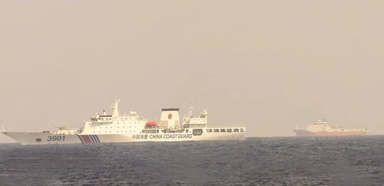 Tàu bảo vệ tuần duyên 3901 (lớn nhất thế giới với 12000 tấn) (bên trái) và tàu khảo sát của Trung Quốc Haiyang Dizhi 8 bên phải. Các tàu Trung Quốc tiếp tục hoạt động trong vùng biển của Việt Nam.
