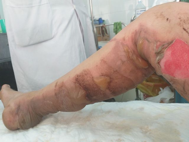 Khi vừa chạy ra trước cửa để xem có chuyện gì, chị H. bất ngờ bị một người đàn ông bịt kín mặt mũi ném túi chứa nhiều chai bom xăng về phía mình. Do bất ngờ không kịp tránh nên chị H. bị những chai bom xăng trúng vào đùi và chân.