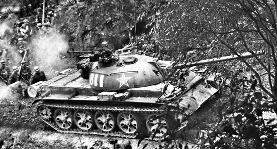Khác với bộ binh, xe tăng cần có đường xá để đạt tốc độ di chuyển nhanh nhất - tuy nhiên đường xá ở miền Bắc Việt Nam thường có núi cao bao quanh, quân và dân ta thường tổ chức đánh du kích, tấn công xe tăng địch từ hai bên sườn núi cạnh đường giao thông. Nguồn ảnh: Tiexue.