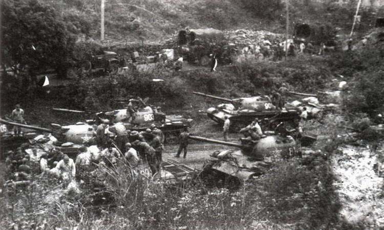 Địa hình rừng núi và sông suối chia cắt mạnh khiến lực lượng tăng thiết giáp của Trung Quốc rất khó tham chiến, tuy nhiên tướng lĩnh của chúng vẫn y lệnh tiến công, khiến cho dàn thiết giáp không những không đóng góp được gì mà còn bị thiệt hại nặng. Nguồn ảnh: Tiexue.