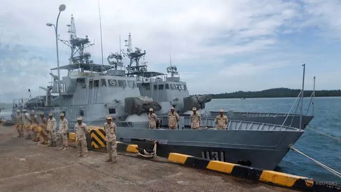 Các thủy thủ đứng bảo vệ gần các tàu tuần tra. (Ảnh: Reuters)
